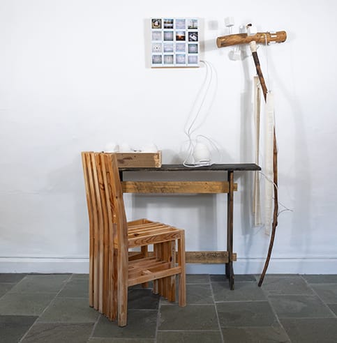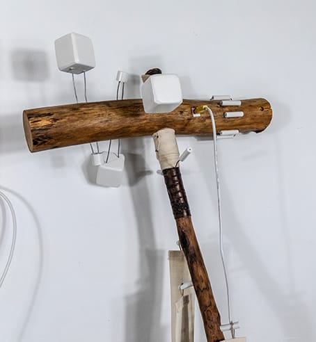 There are two ways to use the hammer, one through destruction the other through care, you can strike an object and read the image, using the correct end of course, or you can wrap the staff with letter forms to create a literary prompt. Both can be feed to the AI in this instance it’s a Stable Diffusion Model that I have locally trained on my own sculptural outputs.